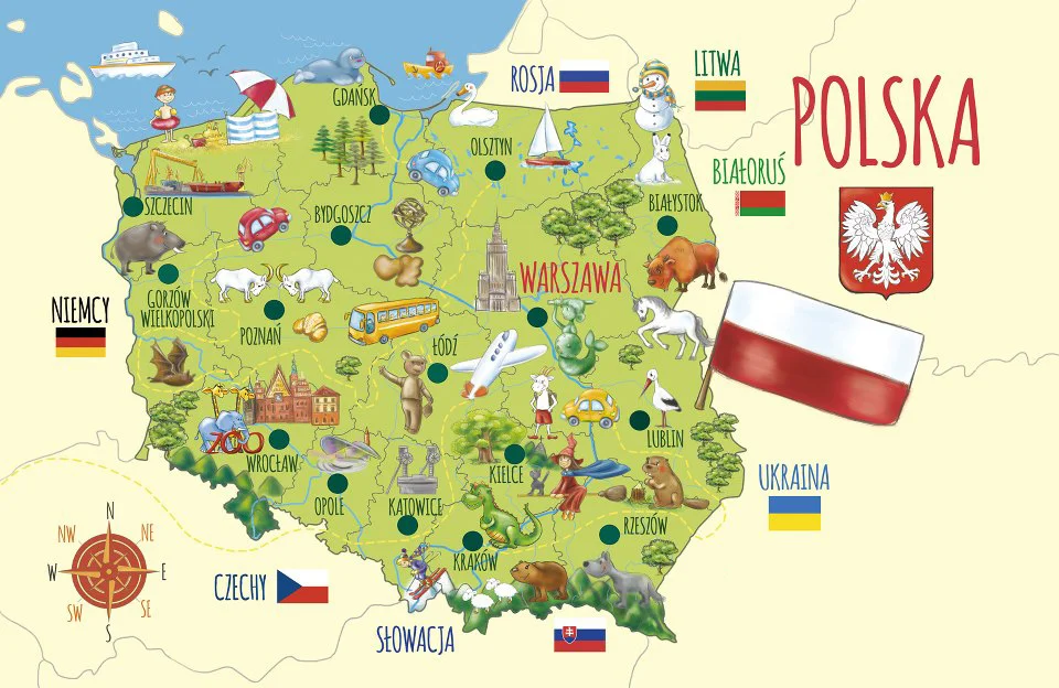 ♦ Польша (Rzeczpospolita Polska), государство в Центральной Европе, парламентская республика. Занимает 69-е место по территории и 37-е – по численности населения. Поделена на 16 воеводств. Столица – Варшава. Научно-географически лежит она между 49° и 54°50’ северной широты и 14°07’ и 24°08’ восточной долготы, а выражаясь попроще – между Бугом и Одрой, Карпатами и Балтикой. Территория – 312 685 км². Протяжённость границ – 3 582 км. Население – более 38 млн человек. Этнические поляки составляют около 93%, а около 87% населения относит себя к католикам.
